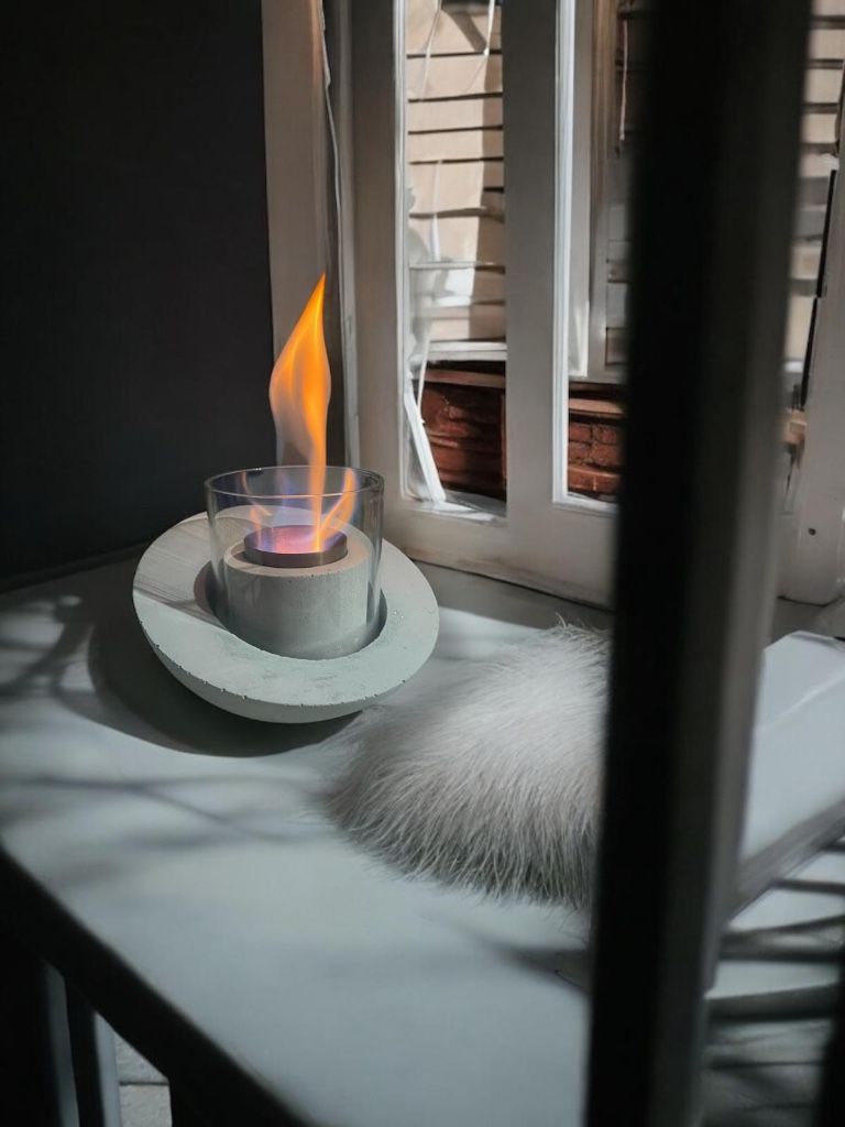 Ateş çukuru / Firepit / Masaüstü ŞöminesiMasaüstü şömine yüksek kaliteli polimer hafif betondan üretilmiştir.Yanma haznesi metal aparattan oluşmaktadı..